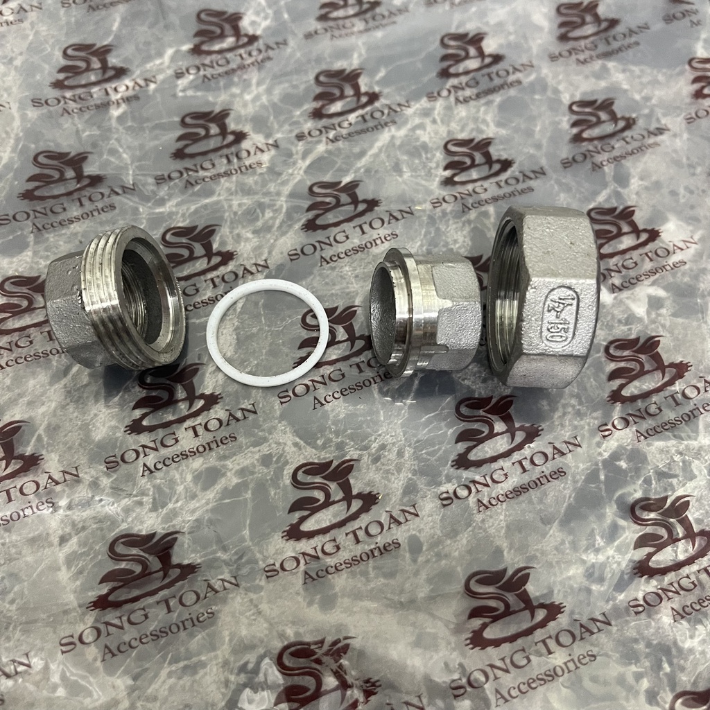 [RẮC CO INOX] Ren trong nối hai đầu BSP hệ G, Có gioăng cao su phần đai giúp kín nước - Chất liệu Inox
