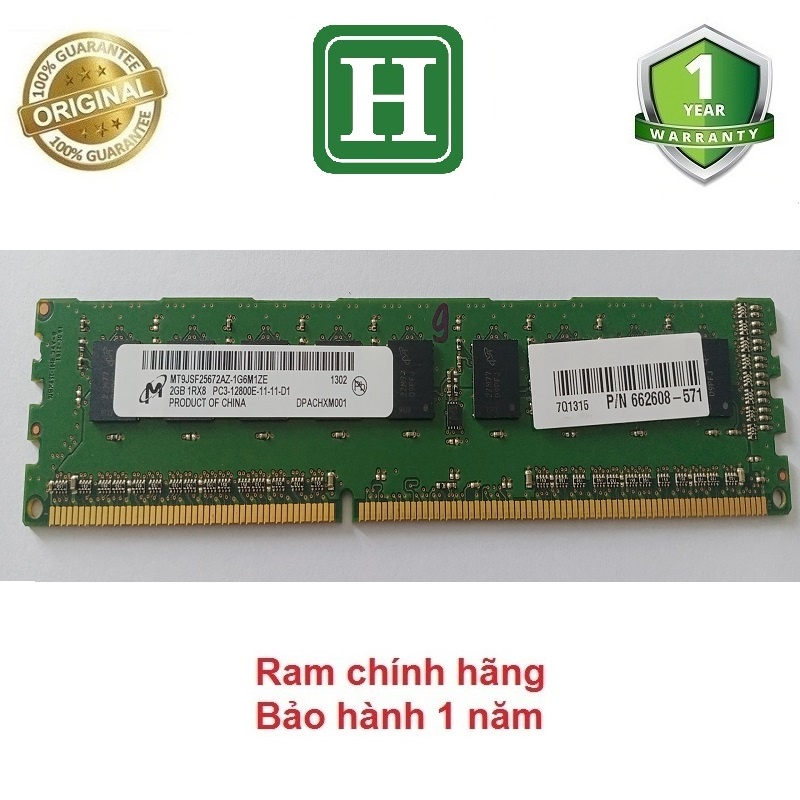 Ram 2gb ddr2/ddr3 bus 667, 800, 1333, 1600 ECC unbuffered và các loại khác - là dòng ram đồng bộ dùng cho Server, máy trạm Worksation và cả máy bộ, PC gaming chuyên dụng. sản phẩm là hàng zin chính hãng, siêu bền và ổn định, được bảo hành 1 đổi 1 trong suốt 1 năm sử dụng nếu bị lỗi.------------------------------------------------------------------------