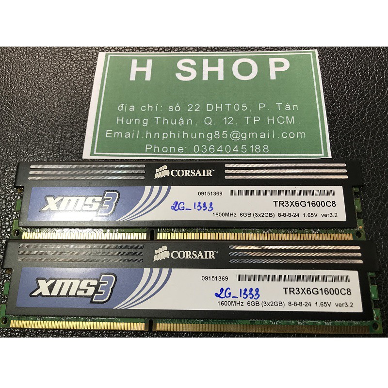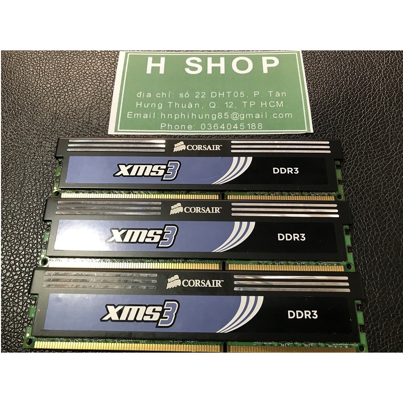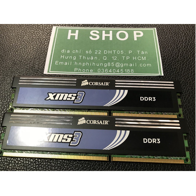 Máy tính & Laptop > Linh Kiện Máy Tính > Ram Máy Tính || Ram 4Gb DDR3 bus 1333 - 10600U, Kit 4gb (2x2gb), ram tản nhiệt bộ hiệu CORSAIR XMS3, tháo máy chính hãng, bảo hành 3 nămCòn hàng