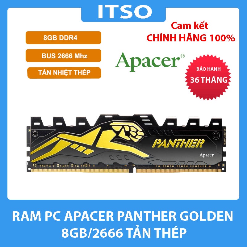 Máy tính & Laptop > Linh Kiện Máy Tính > Ram Máy Tính || [Mã 273ELHA100K0 hoàn 7% đơn 500K] RAM Apacer DDR4 8GB 2666 OC Panther Golden chính hãng - Bảo hành 36 thángCòn hàng