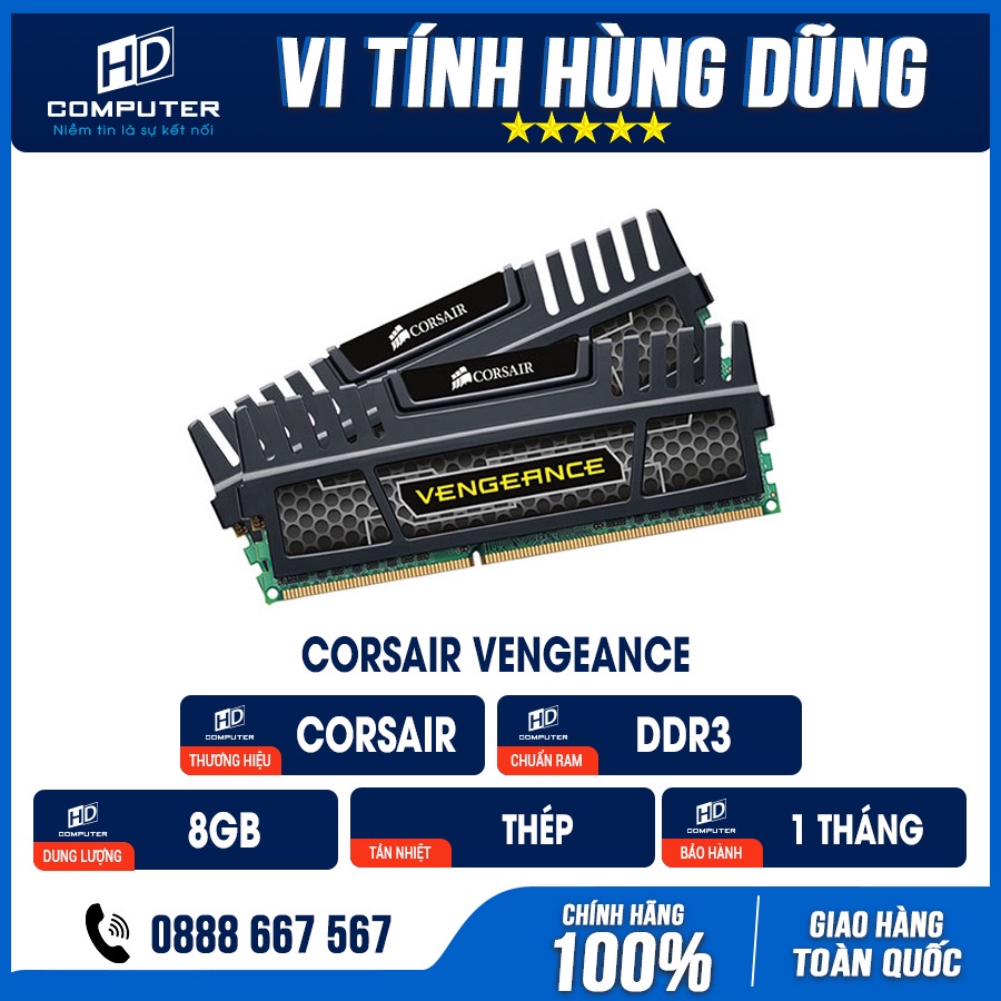 Ram DDR3 8G, Corsair Vengeance 8g bus 1600, Kingston 8g bus 1333/ 1600, GeiL Veloce 8g/1600, ram máy tính ddr31. RAM DDR3 CORSAIR VENGENCE 8G/1600 chạy được trên main H61, H81, B75, B85, H77, H97, Z97