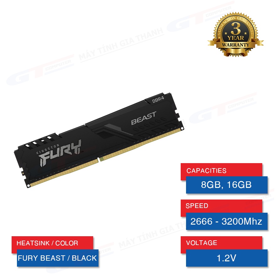 Giới thiệu Ram DDR4 16GB 3200Mhz Kingston Fury Beast Black Chính Hãng