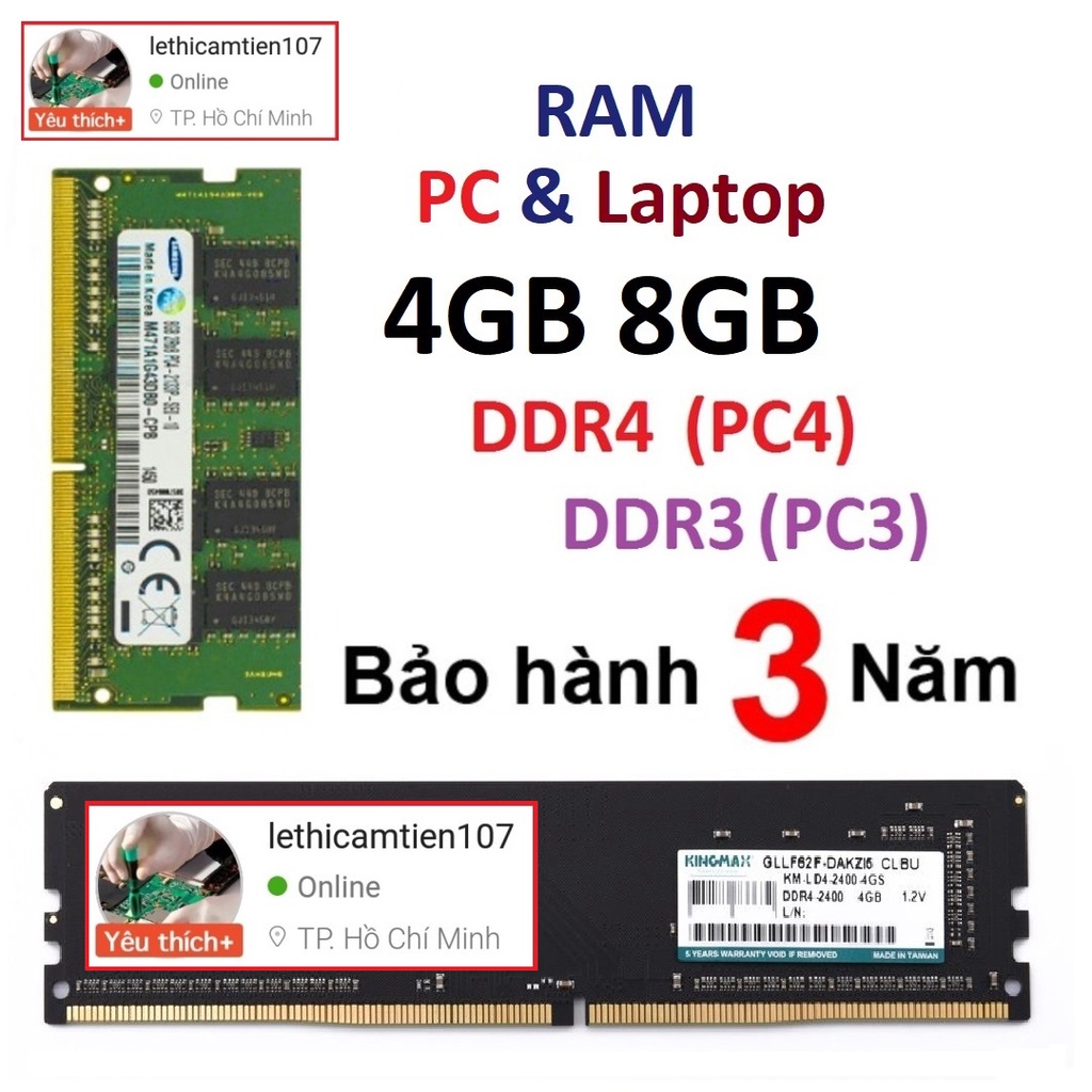 Ram PC máy bàn và laptop hàng tồn kho như mới. Bảo hành 36 tháng 1 đổi 1.