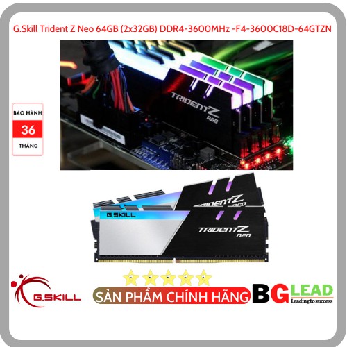 Máy tính & Laptop > Linh Kiện Máy Tính > Ram Máy Tính || RAM G.Skill Trident Z Neo 64GB (2x32GB) DDR4-3600MHz -F4-3600C18D-64GTZN - Chính hãng, Mai Hoàng phân phối và BHCòn hàng