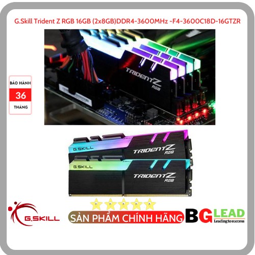 Máy tính & Laptop > Linh Kiện Máy Tính > Ram Máy Tính || Ram G.Skill Trident Z RGB 16GB (2x8GB)DDR4-3600MHz -F4-3600C18D-16GTZR - Chính hãng, Mai Hoàng phân phối và bảo hànhCòn hàng