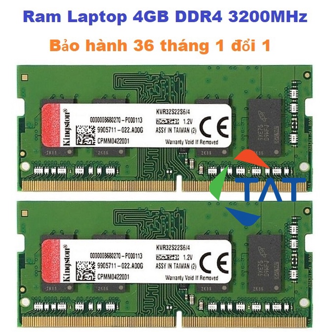 Thông số Ram Laptop Kingston 4GB DDR4 3200MHz✔️ Hãng sản xuất: Kingston