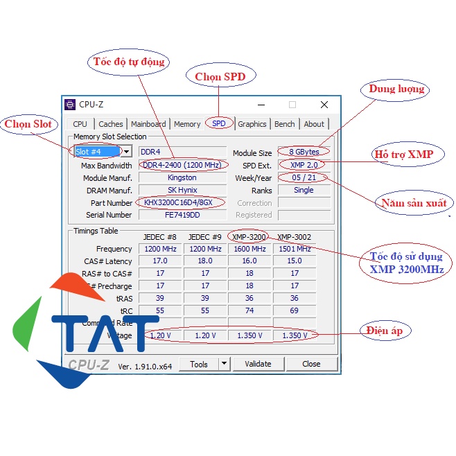 => Để xác định loại Ram máy đang dùng quý khách tải phầm mềm CPUz về máy, kích vào Tab (SPD) kiểm tra thông số, và mua Ram đúng với thông số bạn vừa kiểm tra.