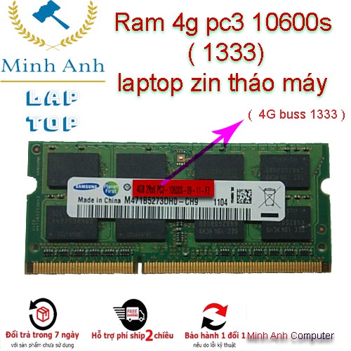 Máy tính & Laptop > Linh Kiện Máy Tính > Ram Máy Tính || RAM Laptop 2G DDR3 cũ tháo máy Bus 1333 / Bus 10600s 8500s / (Ram Laptop PC3-2G cũ)Còn hàng