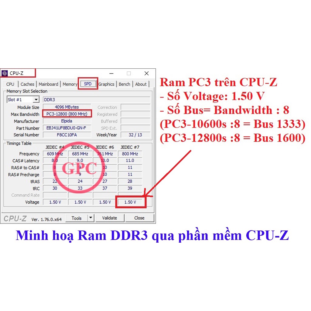 ⛔ DDR3 (PC3) Check trên phần mềm CPU-Z mục SDP dòng Voltage ghi 1.50 V (như ảnh đi kèm minh họa)