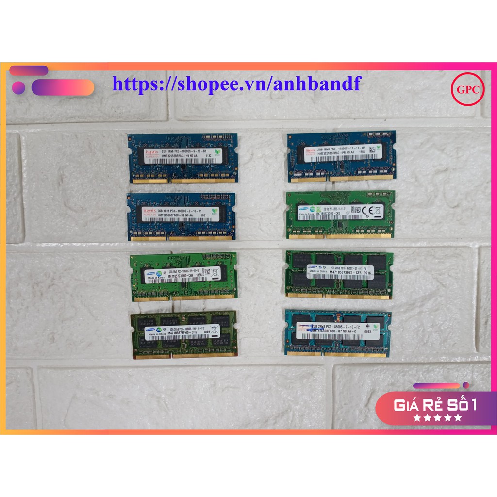 Máy tính & Laptop > Linh Kiện Máy Tính > Ram Máy Tính || RAM Laptop 2G DDR3 cũ tháo máy Bus 1333 / Bus 1600 / Bus 1066 MHz (Ram Laptop PC3-2G) (FREE SHIP ĐƠN TỪ 50K)Còn hàng
