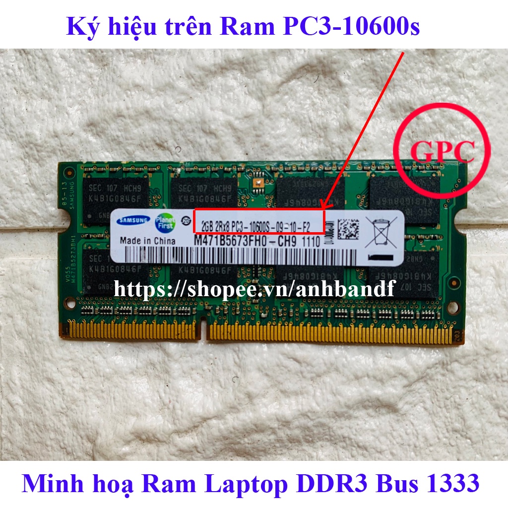 ⛔ Bus 1333 /PC3-10600s: là Ram DDR3 dung lượng 2Gb Bus 1333, ký hiệu trên Ram PC3-10600s