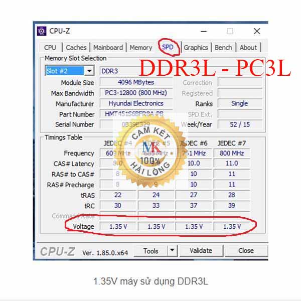 Chủng loại: DDR3L Laptop 1600Mhz (PC3L-12800s) -1.35VDung lượng: 4GB x 1 thanh