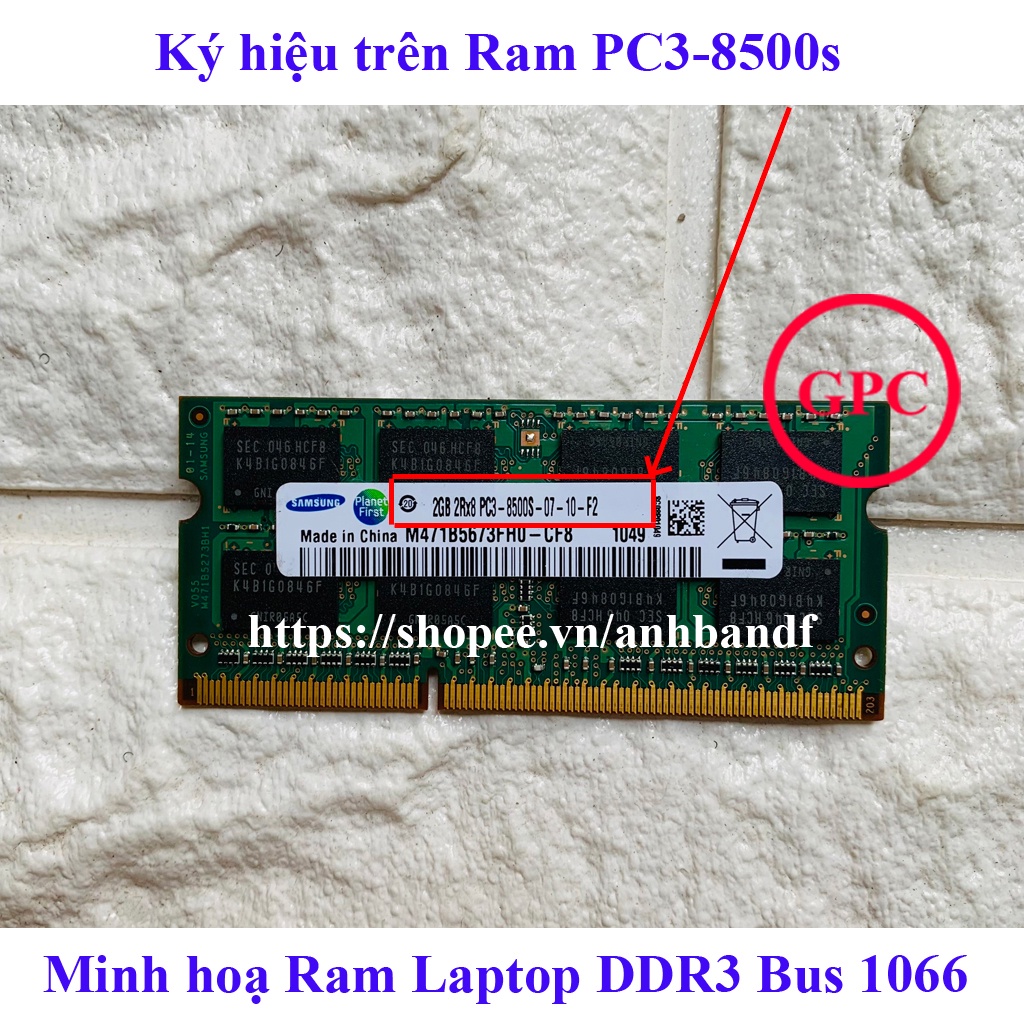 ⛔ Bus 1066 (PC3-8500s): là Ram DDR3 dung lượng 2Gb Bus 1066, ký hiệu trên Ram PC3-8500s