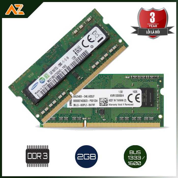 Ram Laptop DDR3 2GB BUS 1066 / 1333 / 1600✔️ Thông số: Ram Laptop DDR3 2GB BUS 1066 / 1333 / 1600