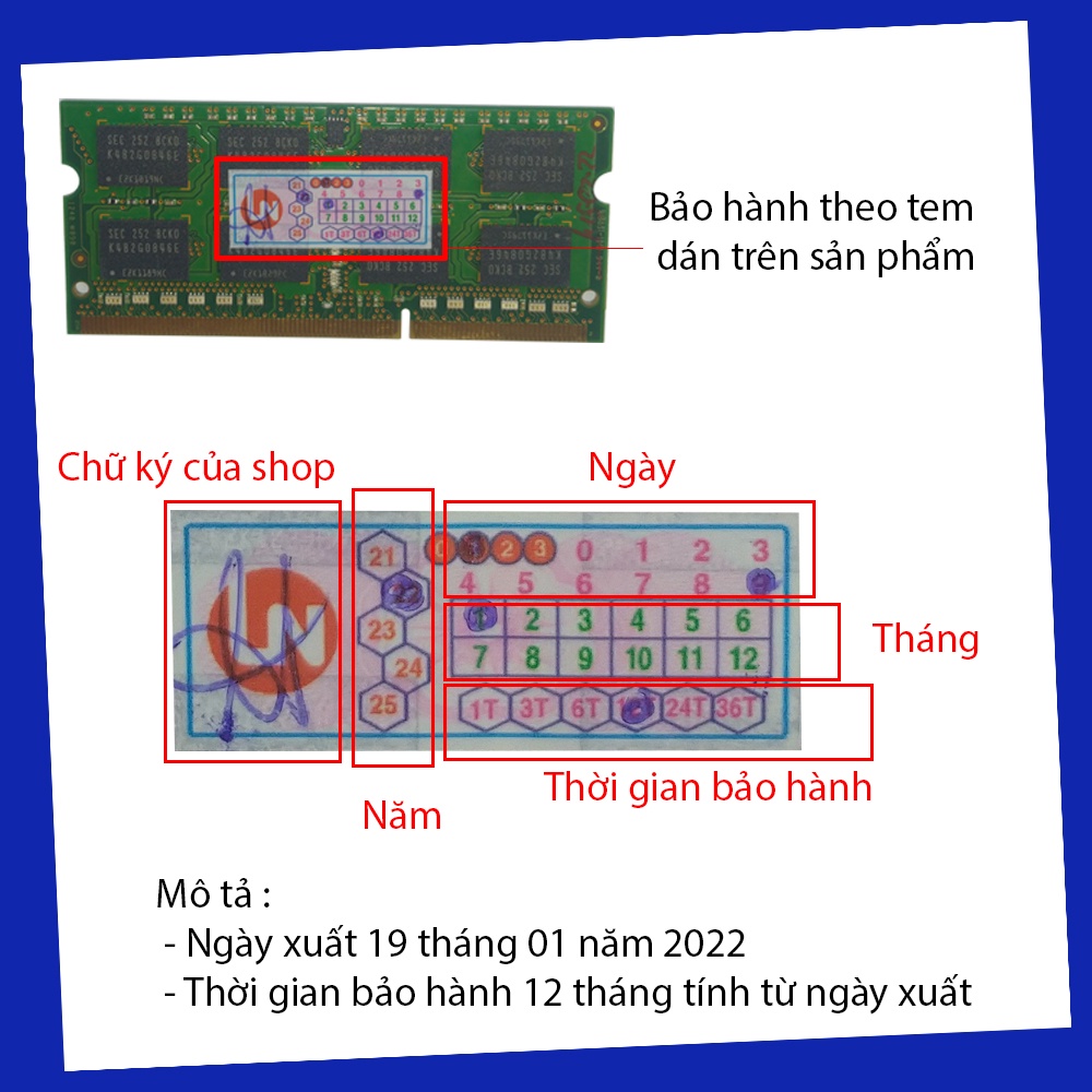 1. Dựa vào thực tế tháo ra kiểm tra trên tem nhãn sản phẩm ( theo số chân trên RAM , theo tem nhãn ghi trên khe cắm RAM trên máy laptop )