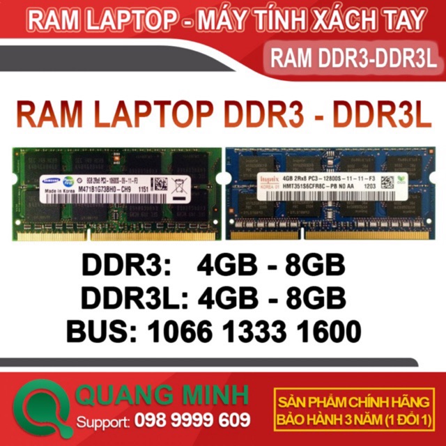 LƯU Ý: RAM LAPTOP DDR3L PC3L - 4GB/ 8GB CHỈ DÙNG CHO LAPTOP CÓ CPU I3,I5,I7.... THẾ HỆ 2,3. 4,5.6....