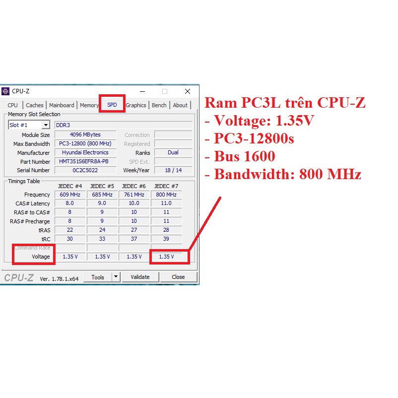 ⛔ Check trên phần mềm CPU-Z mục SDP dòng Voltage ghi 1.35 V (như ảnh đi kèm minh họa)