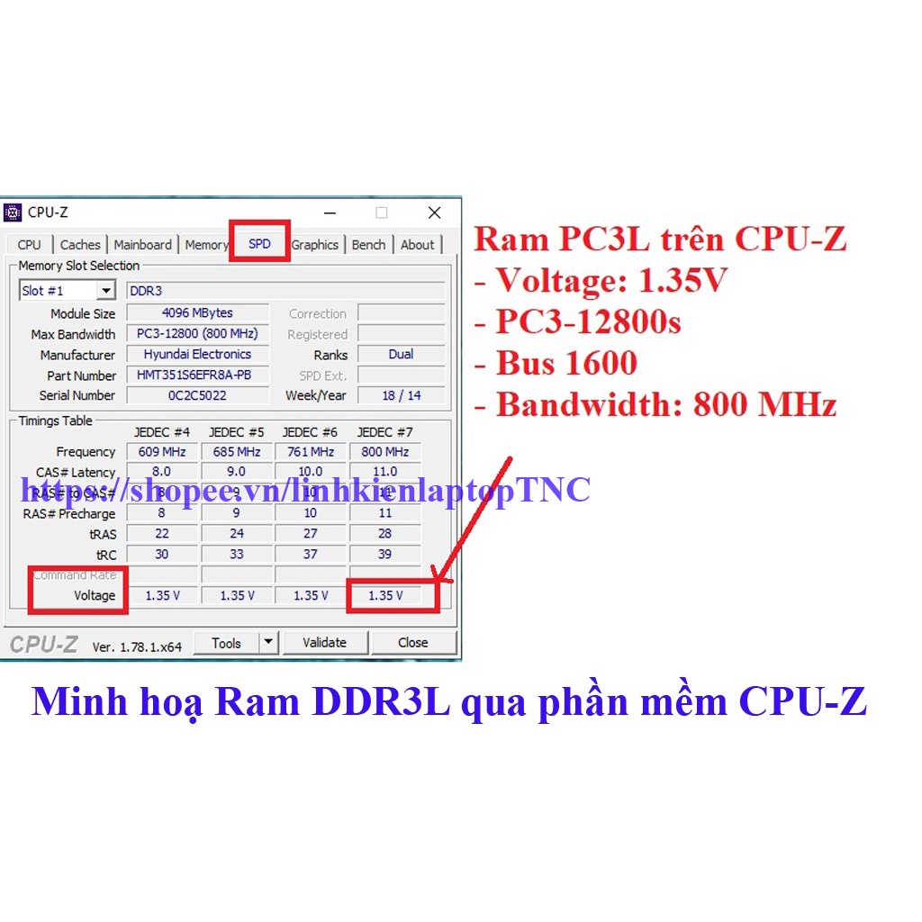 ⛔ Check trên phần mềm CPU-Z mục SDP dòng Voltage ghi 1.35 V (như ảnh đi kèm minh họa)