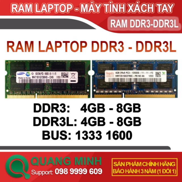 Giới thiệu Ram Laptop DDR3L 8Gb 4Gb PC3L Bus 1600 ( Sam với Hynix / MT) - Bảo Hành 3 Năm