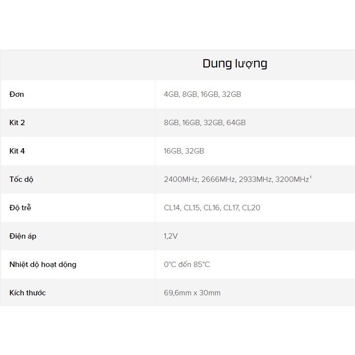 ✔️ Dung lượng: 8GB (8x1)