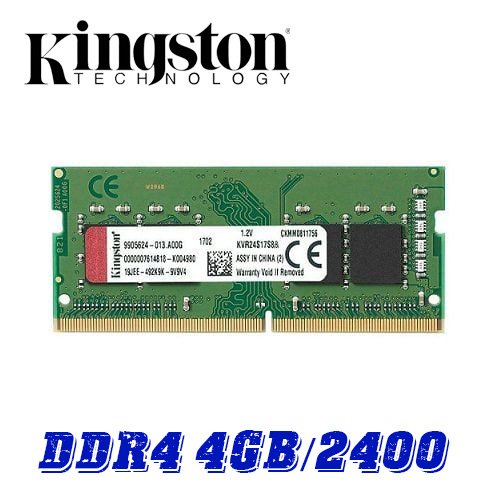 Tên sản phẩm: Bộ nhớ laptop DDR4 Kingston 4GB 2400 8GB 2400- Dung lượng: 4GB 8GB- Thế hệ: DDR4- Bus: 2400MHz
