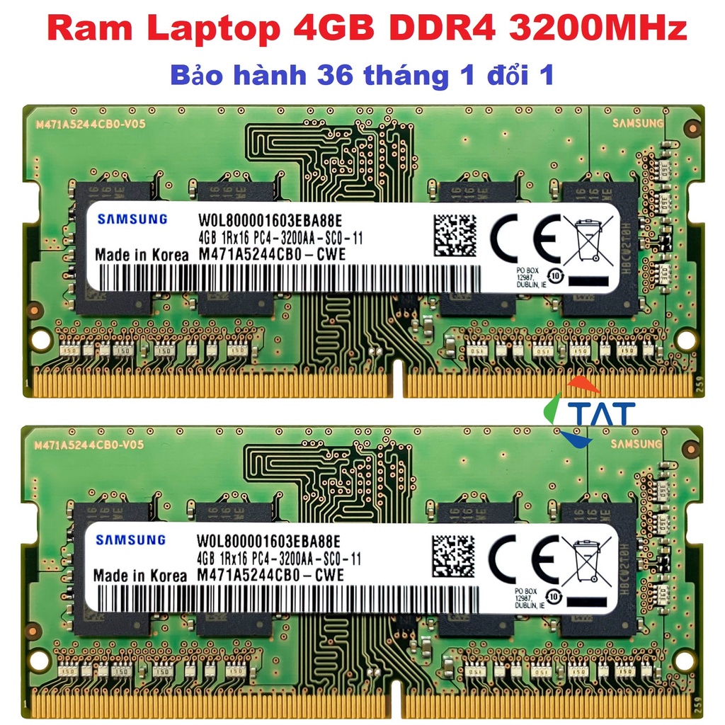 Ram Lapto 4GB DDR4 3200MHz chuyên xử lý game, thiết kế, render video, chạy máy ảo các loại...Thông số Ram Laptop Samsung 4GB DDR4 3200MHz