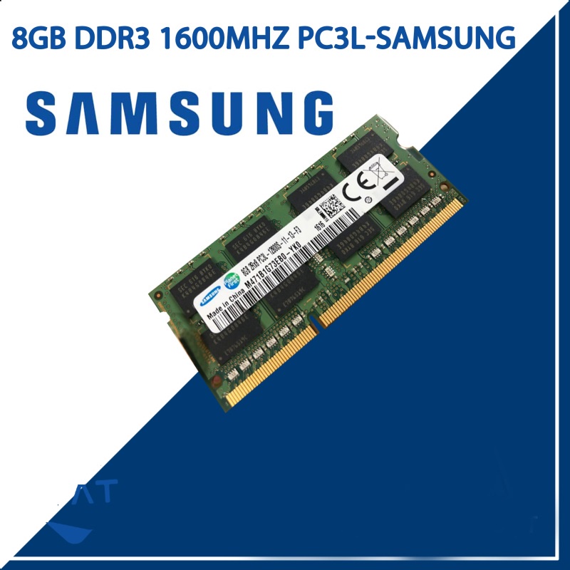 RAM DDR3L dành cho Laptop Dung lượng 8G/4GB Bus 1600MHz Made in: China, Philippines, Korea (tùy theo lô nhập hàng)RAM Laptop Samsung 8G/4GB DDR3L bus 1600 hỗ trợ xung bus lên đến 1600Mhz. Đồng thời, RAM cũng hỗ trợ bạn có thể tiết kiệm được năng lượng tiêu thụ lên đến 20%, nhờ đó nên tuổi thọ của pin cũng được giảm đáng kể.