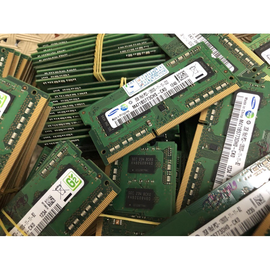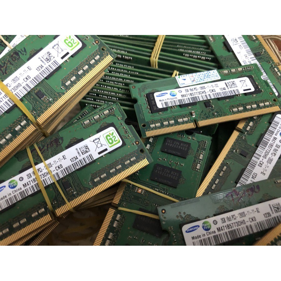 Ram 2GB Bus 1333MHz 1600MHz sử dụng cho Laptop hỗ trợ DDR3 và dòng chíp Core i3-i5-i7 thế hệ 1,2,3 (không sử dụng được cho Laptop có CPU HasWell thế hệ mới - dòng CPU này phải dùng Ram PC3L)Các thương Hiệu: Samsung, Hynix, kingston, Micron, Crucial, Nanya, Elpida...