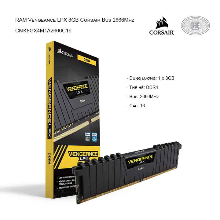 Ram máy tính DDR4 Corsair 8GB-Bus 2666 CMK8X4M1A2666C16 - Chính hãng