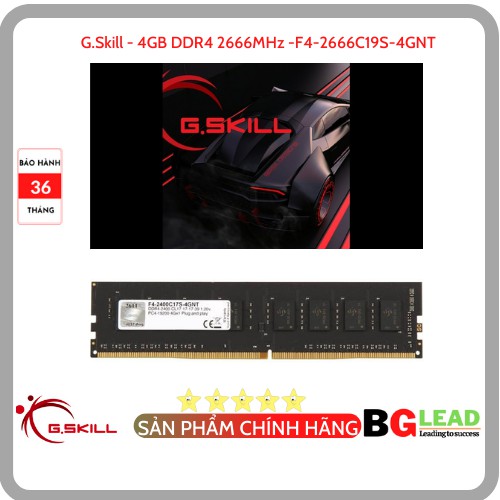 Ram máy tính G.Skill - 4GB DDR4 2666MHz -F4-2666C19S-4GNT - Chính hãng, Mai Hoàng phân phối và bảo hành toàn quốc