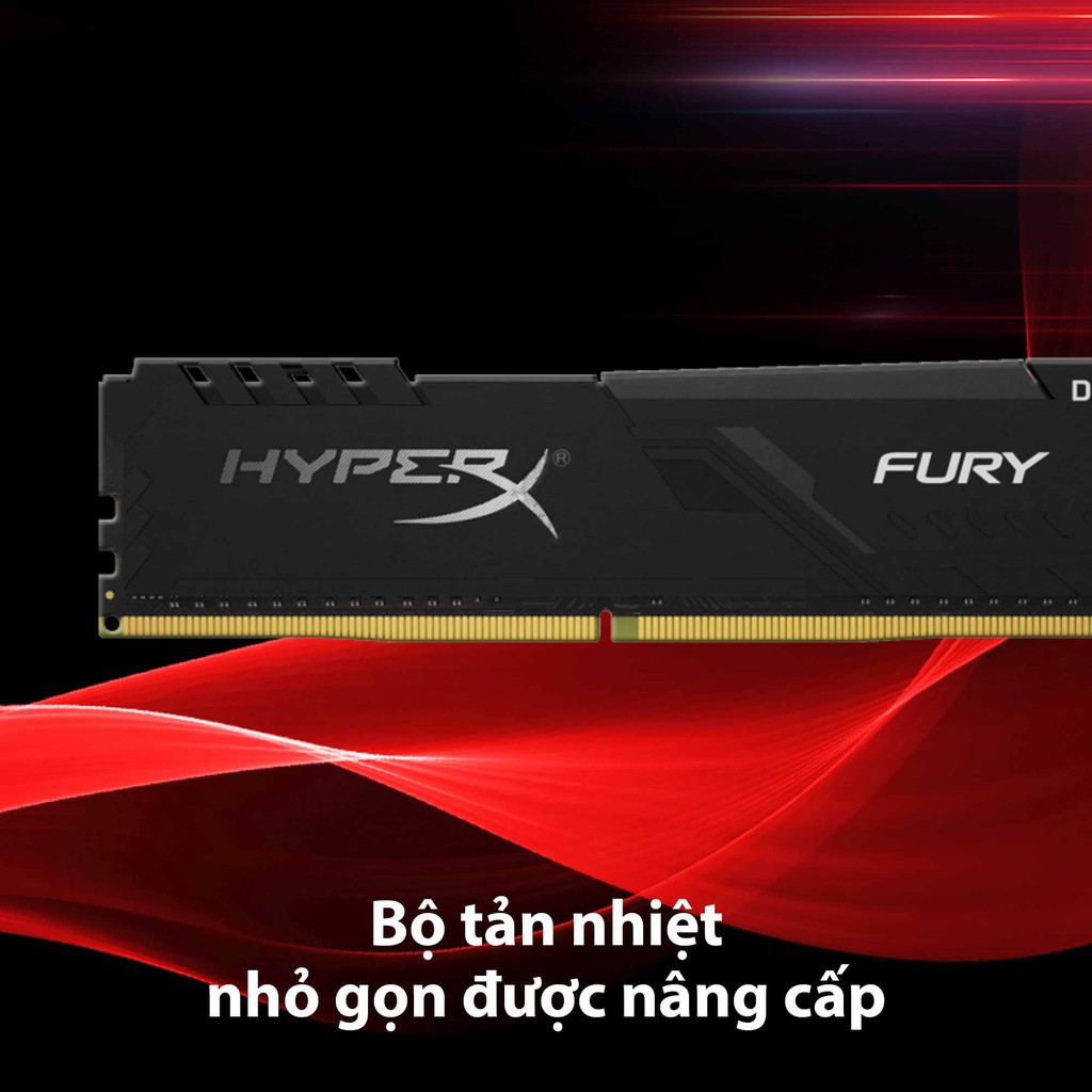 HyperX FURY DDR4 tự động ép xung với tần số được công bố cao nhất, lên tới 3466 MHz1, cung cấp khả năng tăng cường Plug N Play để chơi game, chỉnh sửa video và kết xuất. FURY DDR4 đã sẵn sàng XMP và có sẵn ở tốc độ 2400 MHz, tốc độ 3466 MHz, độ trễ từ CL15 đến CL16, dung lượng mô-đun đơn là 4GB 4GB 16GB và dung lượng bộ 16GB 64GB. Nó có tính năng ép xung tự động Plug N Play ở tốc độ 2400 MHz và 2666 MHz và tương thích với CPU Intel và AMD mới nhất. HyperX FURY DDR4 vẫn mát mẻ với bộ tản nhiệt cấu hình thấp, thời trang. Được kiểm tra 100% ở tốc độ và được bảo hành trọn đời, FURY DDR4 là sự lựa chọn nâng cấp hiệu quả, không phải lo lắng của bạn.