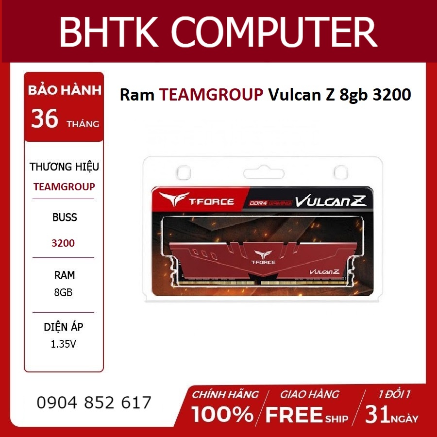 Máy tính & Laptop > Linh Kiện Máy Tính > Ram Máy Tính || Ram máy tính PC Team Group Vulcan Z 8G/3200 Tản nhiệt 8GB (1x8GB) DDR4 3200Mhz hàng thương hiệu chính hãng BH 36 thángCòn hàng