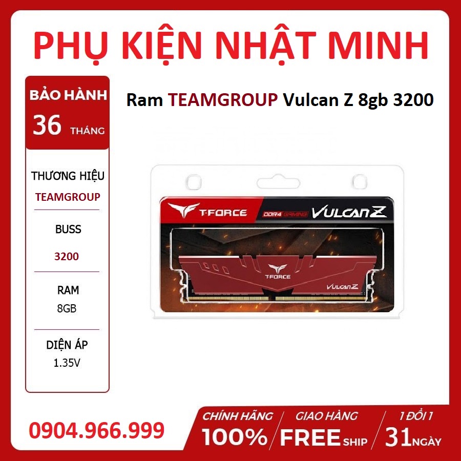Máy tính & Laptop > Linh Kiện Máy Tính > Ram Máy Tính || Ram máy tính PC Team Group Vulcan Z 8G/3200 Tản nhiệt 8GB (1x8GB) DDR4 3200Mhz hàng thương hiệu chính hãng BH 36 thángCòn hàng