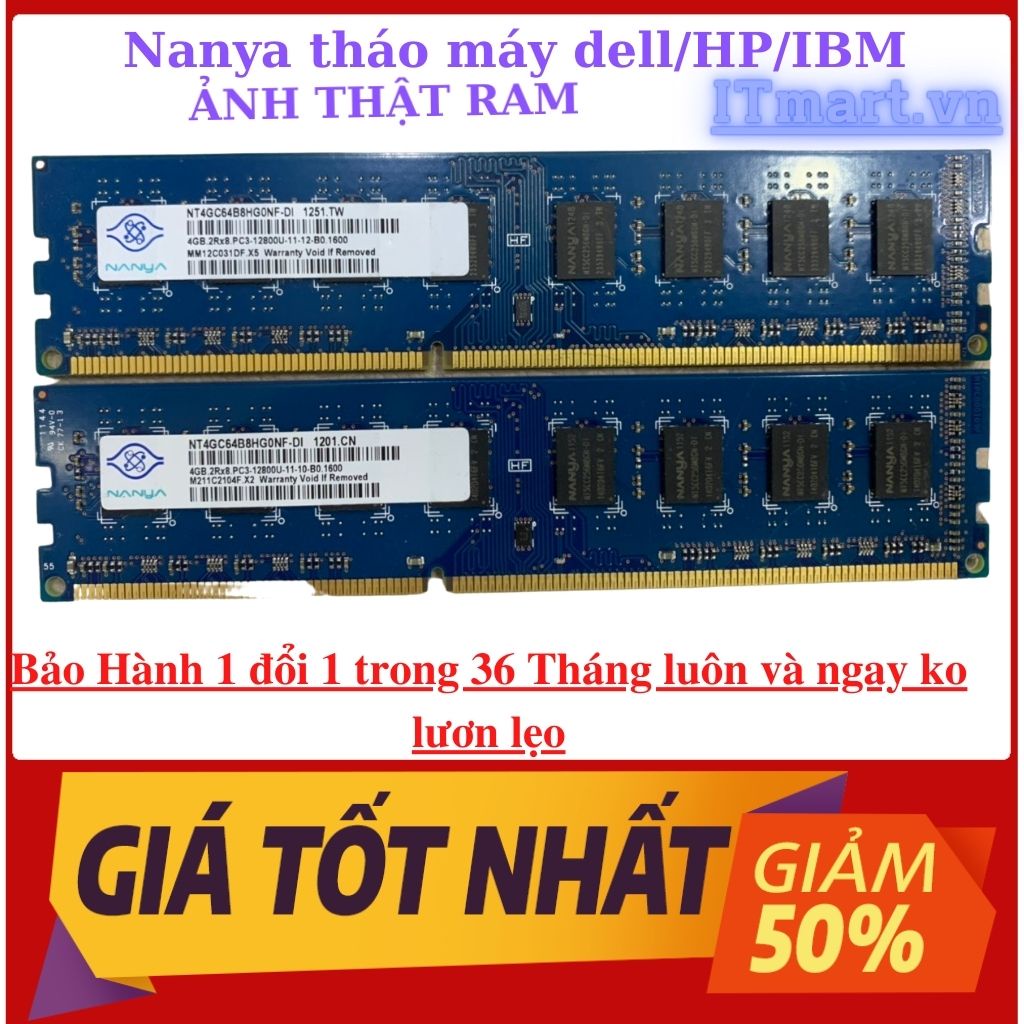 Ram PC DDR3/DDR3L, 8Gb 4Gb bus 1600Mhz- ram tháo máy đồng bộ HP,Dell,IBM chuẩn Mỹ, bảo hành 3 năm