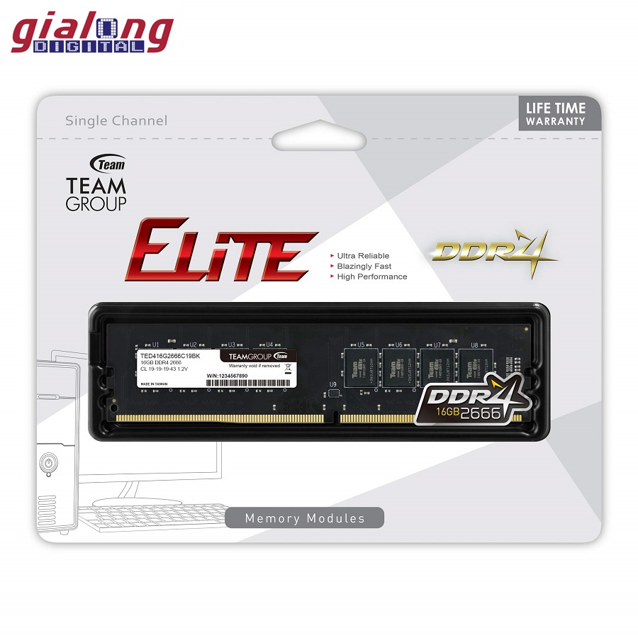 Giới thiệu RAM PC ELITE 8GB BUS 2666 DDR4 TEAMGROUP. Bảo hành 5 năm toàn quốc