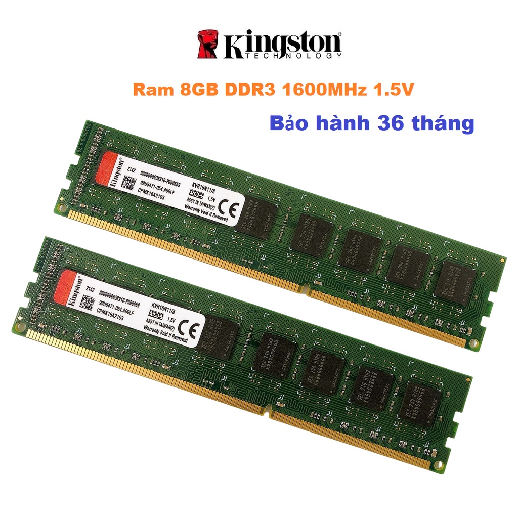 Ram PC Kingston 8GB DDR3 1600MHz PC3-12800 1.5V Dùng Cho Máy Tính Để Bàn Desktop - Bảo Hành 36 tháng 1 đổi 1