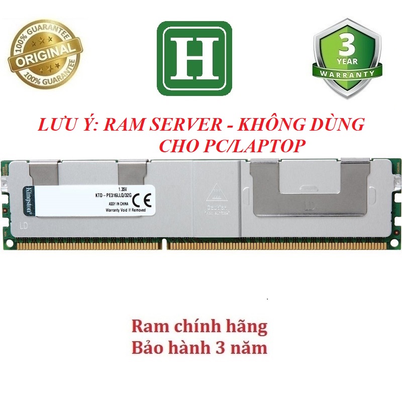 H SHOP cung cấp sản phẩm 32GB DDR3L 1600Mhz ECC LRDIMM Ram New chính hãng Kingston, bảo hành 3 năm 1 đổi 1 trong suốt 3 năm sử dụng nếu bị lỗi.------------------------------------------------------------------------