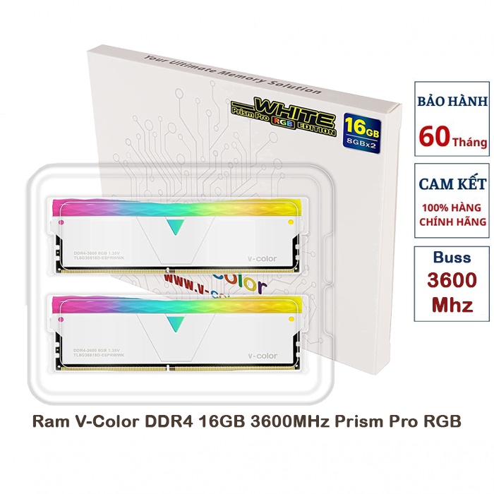 Máy tính & Laptop > Linh Kiện Máy Tính > Ram Máy Tính || Ram V-Color DDR4 16GB(2x8G) 3600MHz Prism Pro RGB - Màu TrắngCòn hàng
