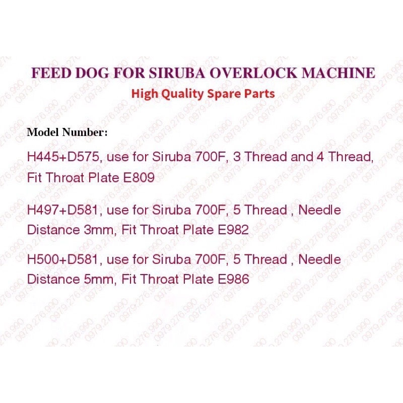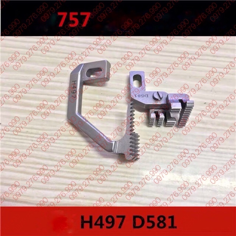 Bộ răng cưa được sử dụng để thay thế cho máy vắt sổ công nghiệp Siruba 2 kim 5 sợi đời F (Siruba 757)Bộ răng cưa có 2 chi tiết có mã số ký hiệu: H497 và D581