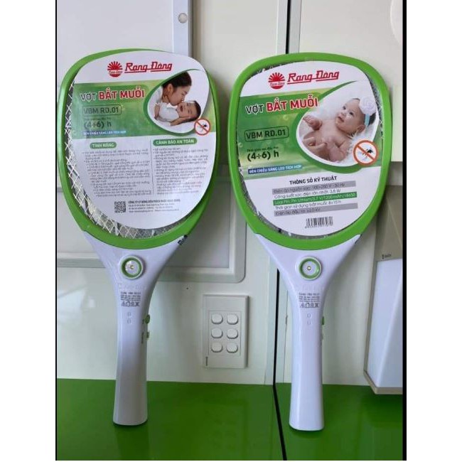 Rạng Đông, BH 2 năm, Vợt bắt mỗi siêu bền, hàng Việt Nam - Chất lượng caoVợt bắt muỗi điện tử VBM RD.01 Rạng Đông có đèn chiếu sáng Led tích hợp và đèn báo sạc pin tiện lợi cho người sử dụng.