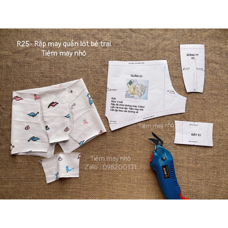 Sở thích & Sưu tầm > Dụng Cụ May Vá || RẬP GIẤY( bản vẽ ) R25_ quần lót bé trai ( 2- 10 tuổi)Còn hàng