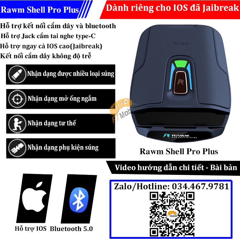 Rawm shell pro plus IOS - Hỗ trợ kết nối cắm dây và bluetooth nhận dạng thông minh dành cho ios cao đã jailbreak