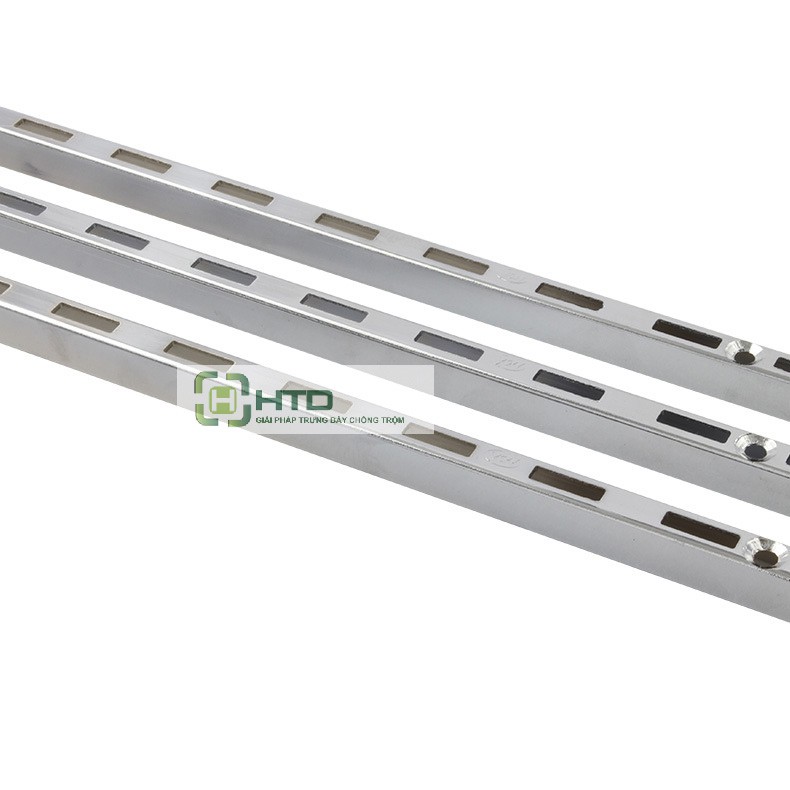 - Thanh ray gắn tường quần áo phụ kiện được dùng cho các cửa hàng các shop thời trang, muốn thay đổi lên xuống các móc treo quần áo cho phù hợp với kính thước từng loại sản phẩm trưng bày.- Thanh ray có thể bắn trực tiếp lên tường hoặc tủ gỗ để làm kệ treo phụ kiện điện thoại, kệ trưng bày quần áo, kệ trang sức. Thanh ray gắn tường được sử dụng rộng rãi tại các siêu thị, cửa hàng, các cửa hàng bán lẻ