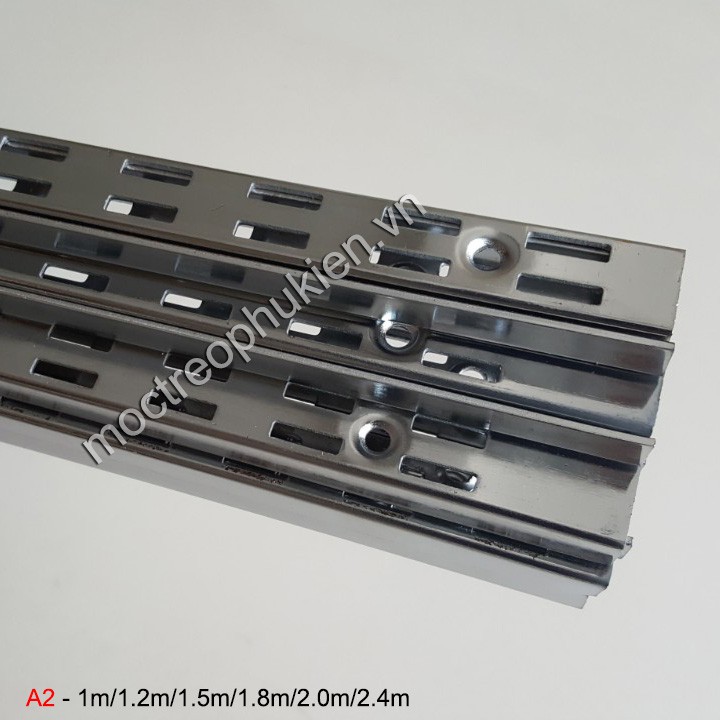 Thanh ray đôi A2 được thiết kế với 2 hàng lỗ riêng biệt. Giúp bạn có thể đồng thời sử dụng 1 lúc 2 dạng phụ kiện trên cùng 1 hàng của thanh ray. Ray có chiều dày là 1.2mm, rộng 17mm chiều sâu 10mm.