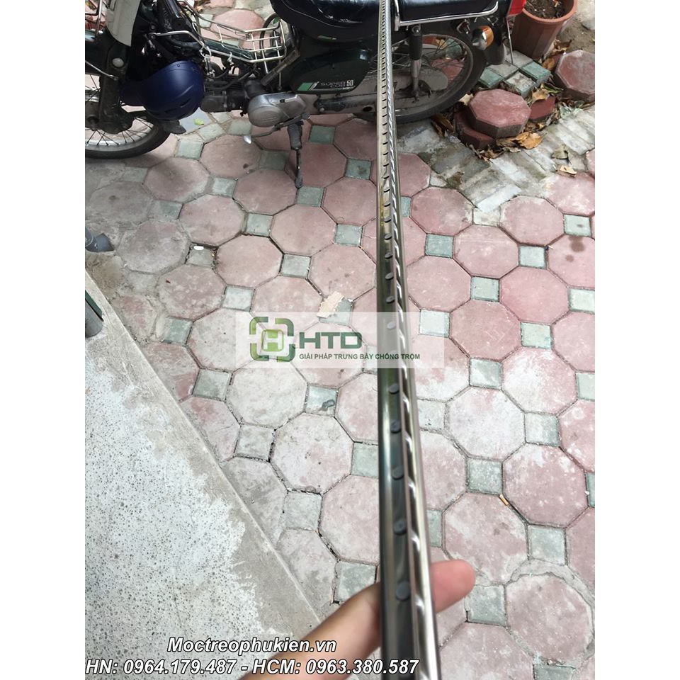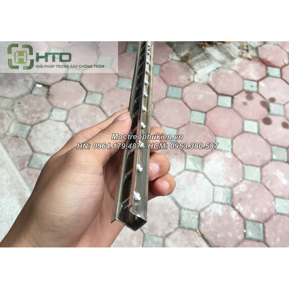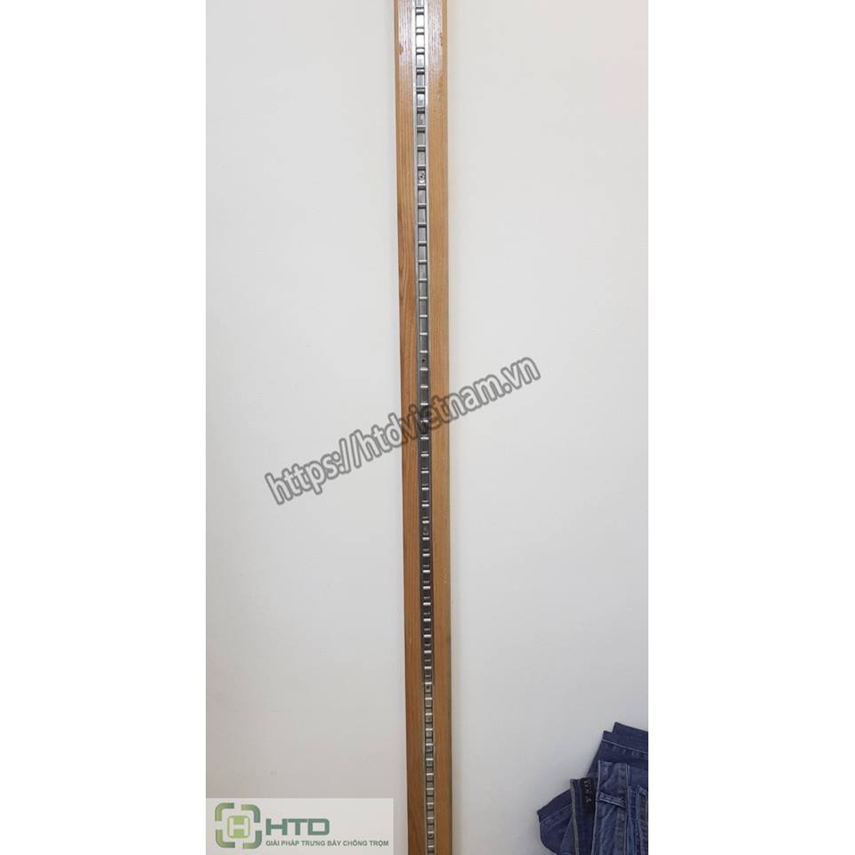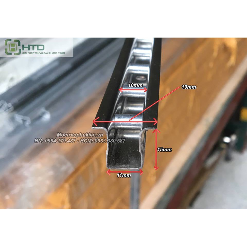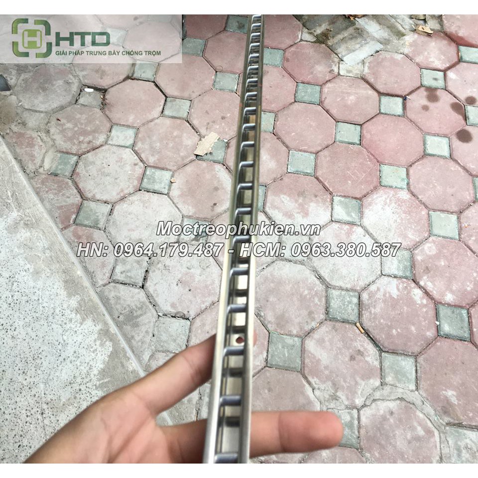 - Thanh ray âm HTD-B01 gắn tường hoặc tủ gỗ tại shop thời trang treo phụ kiện quần áo, thanh ray âm có các chốt có thể linh hoạt di chuyển lên xuống các móc treo hoặc kệ đỡ cho phù hợp với yêu cầu trưng bày của cửa hàng, đây là loại thanh ray đang được sử dụng phổ biến tại các cửa hàng thời trang, rất tiện lợi và tính thẩm mỹ cao