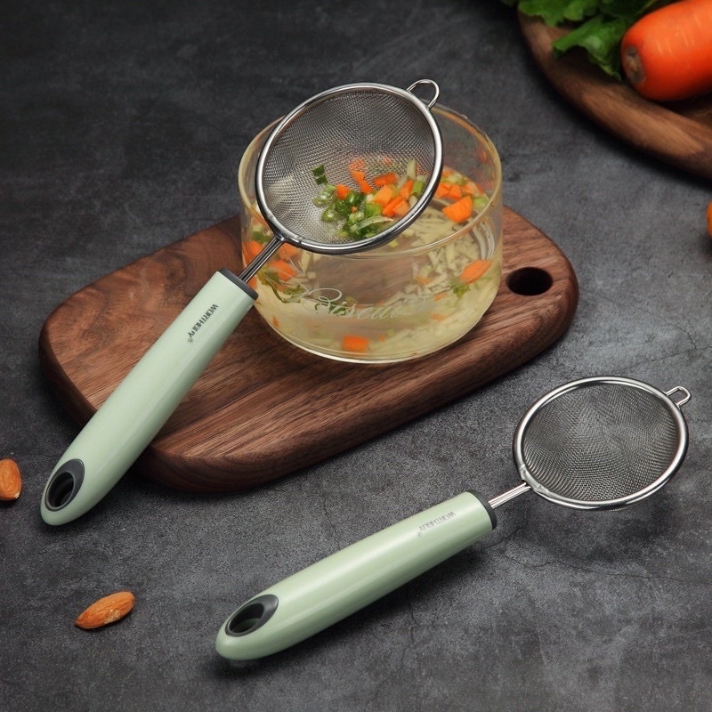 RÂY INOX LỌC CHÁO VÀ ĐỒ ĂN DẶM WORTHBUY CHO BÉGiai đoạn đầu bé mới tập ăn dặm cần rây lại cháo và đồ ăn với 1 lượng rất ít mà máy xay khó có thể xay được. Vì thế rây lọc Worthbuy là trợ thủ đắc lực của mẹ lúc này