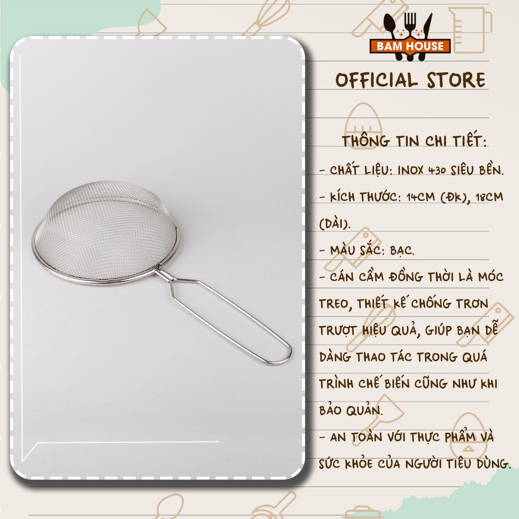 Nhà cửa & Đời sống > Dụng cụ nhà bếp > Dụng cụ lọc || Ray lọc cháo và thức ăn inox Bam House đường kính 15cm cao cấp RIN04 - Gia dụng bếpCòn hàng