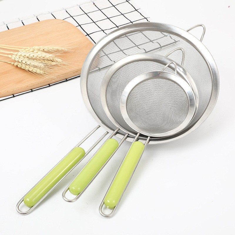 Nhà cửa & Đời sống > Dụng cụ nhà bếp > Dụng cụ lọc || Rây Lọc Viền Inox Cán Xanh Cao Cấp Huyna Mart (Lọc bột cháo, nước ép, thức ăn dặm cho bé)Còn hàng