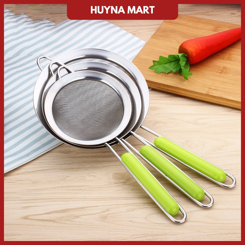 Rây Lọc Viền Inox Cán Xanh Cao Cấp Huyna Mart (Lọc bột cháo, nước ép, thức ăn dặm cho bé)