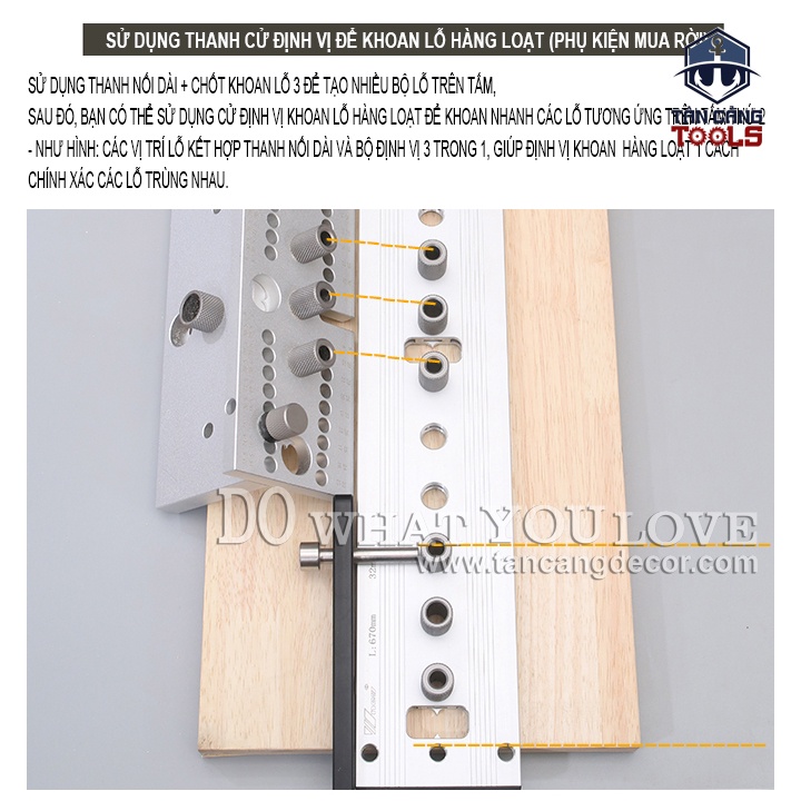 - Bộ Ray Nối Dài Khoan Ốc Cam, Chốt Gỗ Wnew ( Bản Nâng Cấp Mới ) kết hợp với bộ cử khoan ốc cam liên kết, chốt gỗ để khoan định vị trên tấm khổ dài với độ chính xác tuyệt đối.
